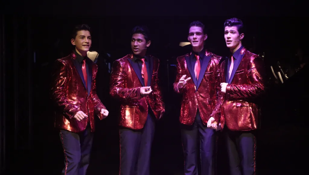 The Kingsmen playing the roles of the Jersey Boys: Toby (Year 11), Zac (Year 12), Rory (Year 11) and Luca (Year 12), have put in months of hard work to tell the story of four blue-collar kids who became one of the greatest successes in pop music history.