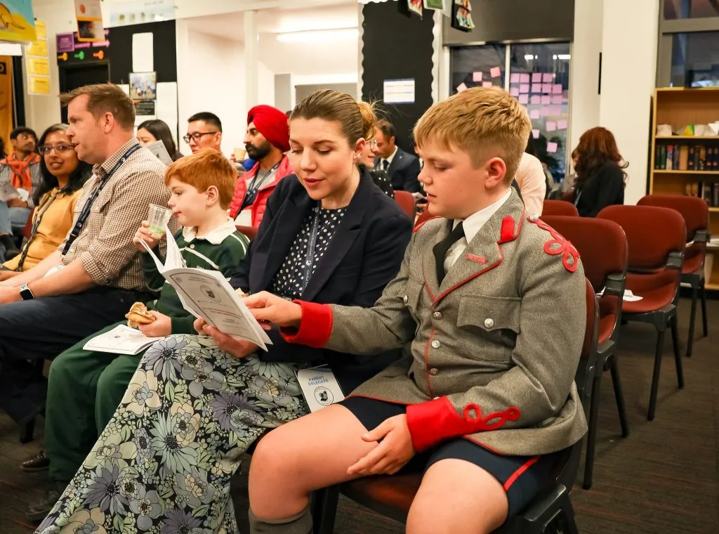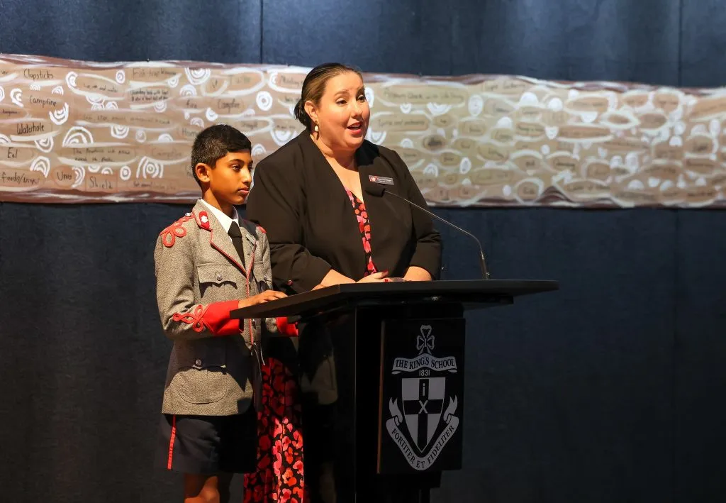 The evening culminated with the inaugural presentation of the piece “Our Home is Our Home” which was composed in collaboration with the Year 6 students and composer, Andrew Howes. The impressive art installations at the front of the hall titled “Seeing through a Scar” captured the attention of the audience. These art pieces were the result of a collaboration with indigenous artist, Brett Groves.