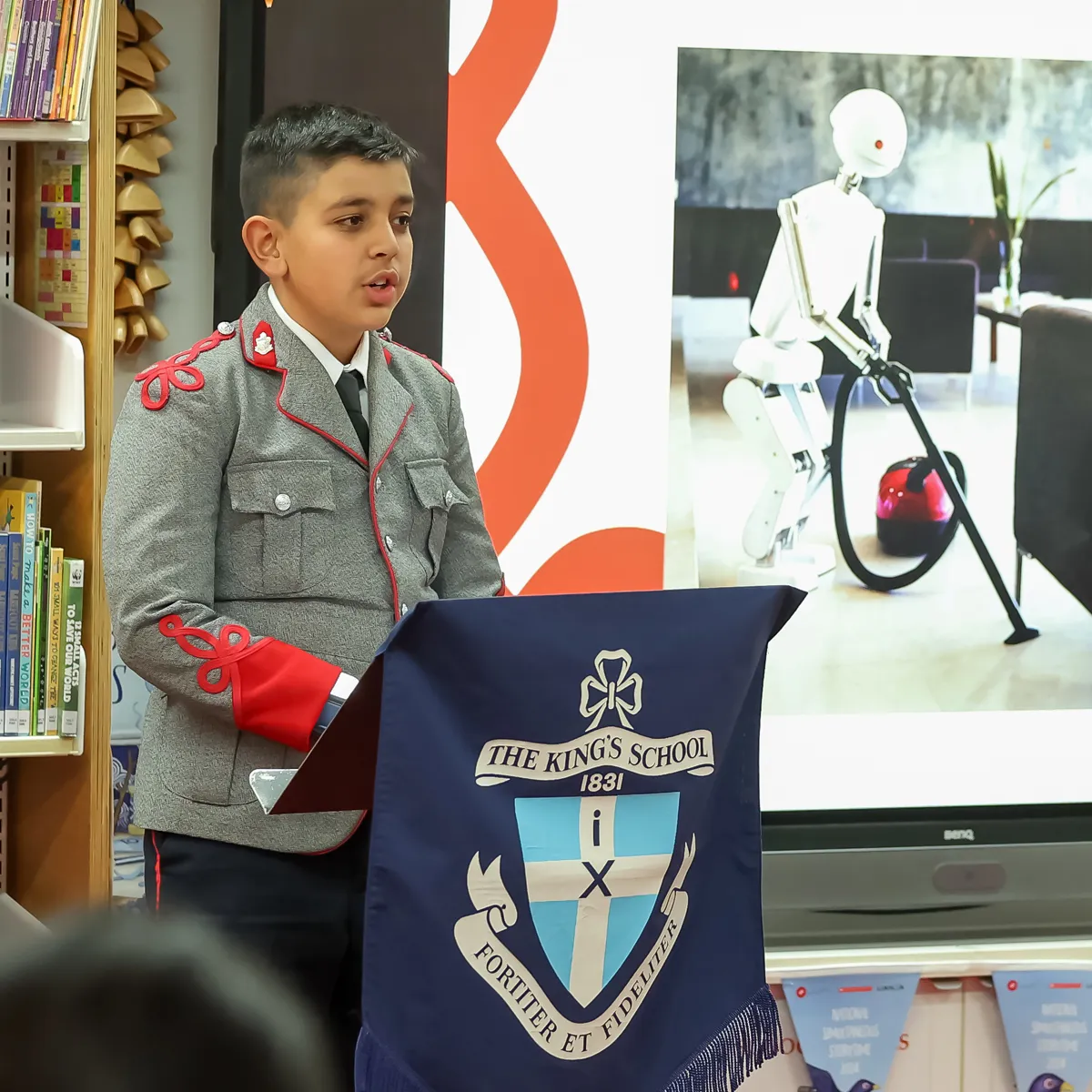 Each Year 6 boy took the stage, presenting their research in front of an audience of parents and guests. The boys tackled a wide range of pressing global issues, from climate change and human rights to artificial intelligence and animal welfare, sharing their findings and solutions.